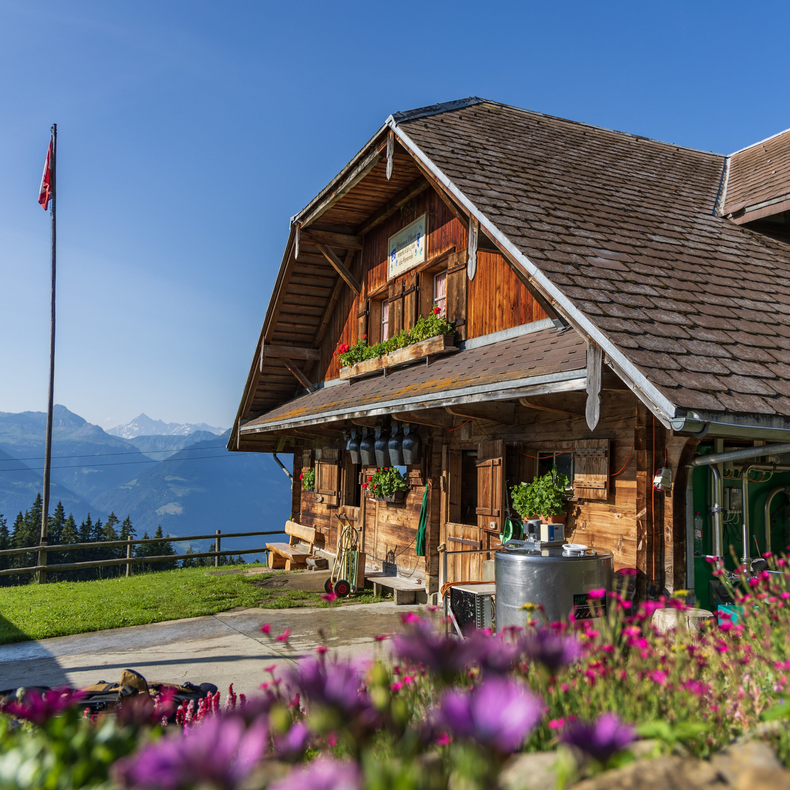 Die Alp Chäseren liegt auf 1'538 Metern über dem Meeresspiegel inmitten der idyllischen Alpenlandschaft von Obwalden. Hier wird während des Alpsommers traditioneller Alpkäse hergestellt – jährlich entstehen zwischen 4'000 und 4'500 Kilo Alpkäse. Seit 2014 leiten Alpsenn Willi Kiser und Älplerin Erika von Rotz die Käseproduktion mit viel Herzblut und Handwerkskunst. Die frische Milch von den Weiden der Chäseren wird direkt vor Ort verarbeitet, um authentischen Schweizer Alpkäse in höchster Qualität herzustellen. Ein unverwechselbarer Geschmack, der das alpine Erbe in jedem Laib weiterleben lässt.